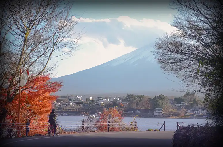 單就賞楓來說,河口湖沿岸都有一些零散的楓樹,但要同時看到楓、湖、山的角度並不多,不騎一圈好好探索真的不好找。