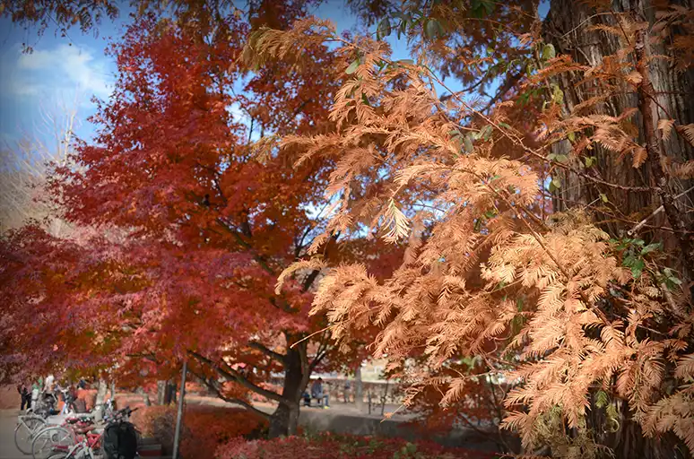 ▼ 除了楓樹以外那邊還有幾棵落羽松,在這個季節會變黃,視覺上多了很多顏色。