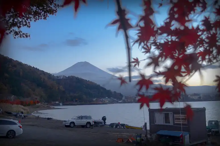▼ 我在日落前嘗試找到了一個可以把楓葉、山、湖一起拍的角度,在那邊等了一會兒,但是很可惜那天沒有出現粉紅富士山。