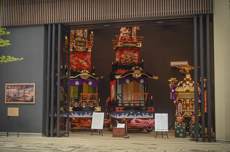 旁邊的寶物殿展示的是山車,在九月的冰川祭好像會拿出來用,但我今年九月晚上參觀其中一天的巡禮只有看到扛小台的神轎遶行赤坂町。