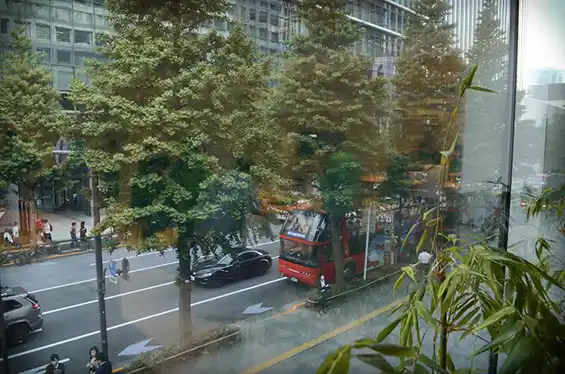 Apple store外面也是銀杏行道樹,木質裝潢的氣質跟銀杏樹非常相襯;這邊又剛好是雙層巴士的路徑,提前找好拍攝點,幸運的話可以將這些元素一起入鏡。