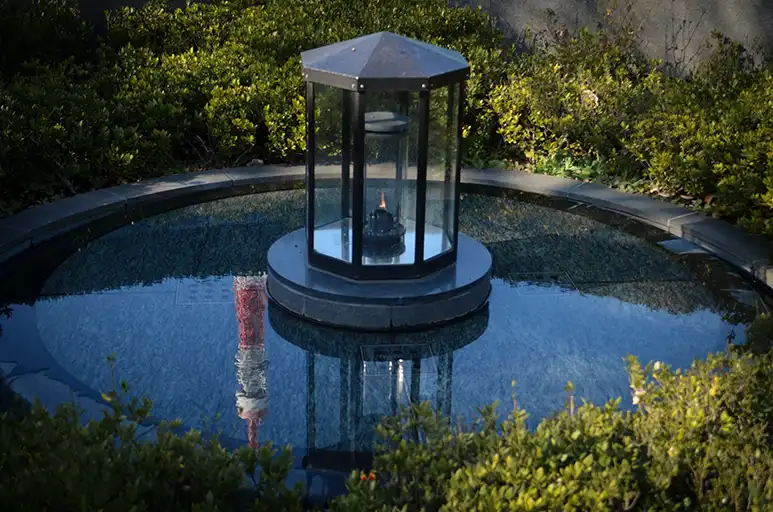 本殿的旁邊與後方各有一間展示戰鬥機等戰爭相關物品的博物館與一個有池塘的小庭園。