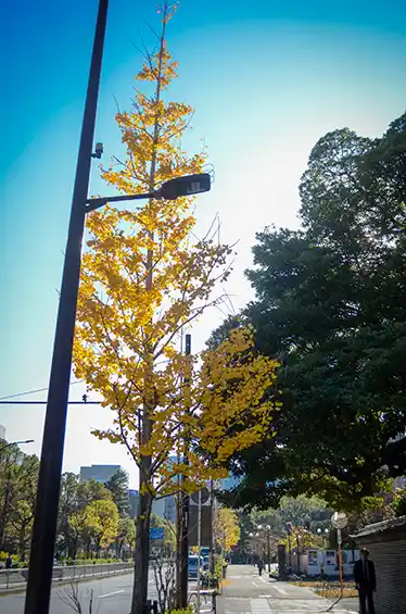 並且外面的人行道就是銀杏樹了,來東京找銀杏只要往大條的馬路走就不會失望,甚至有幾條路本身就是著名的銀杏景點,例如JR西八王子站出來的甲州街道,以及等下要介紹的明治神宮外苑…等。