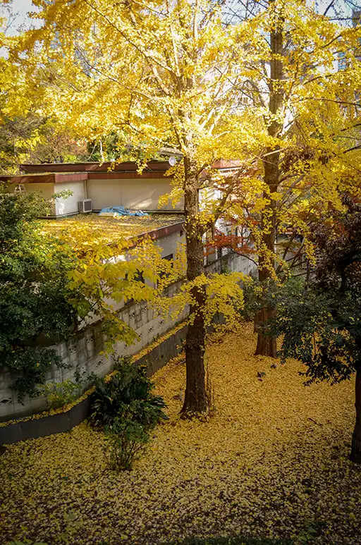 大致上來說觀賞銀杏分成超老的大銀杏樹與整排的銀杏大道,以及最有夢幻感的滿地金黃落葉。由於行道樹一定不會給你堆滿地落葉不掃,所以要看見金黃大道經常得是某個公園、大學校園或神社寺廟等場所才會刻意留下銀杏落葉作為觀賞。但也因為銀杏這個很容易在城鎮裡看見的特性,不一定要跟人家擠風景名勝,有時候散散步也能在一條小巷發現很漂亮的景色喔!