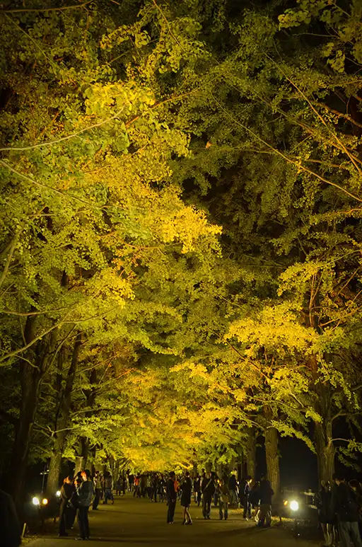 每年銀杏季會有秋季夜間散步活動,開放夜間入場,2024年的到12/1為止。由於夜間入園只開放部分區域,所以昭和紀念公園只打算來一次的話,無論如何我還是推薦白天來,能看到的東西最豐富。
