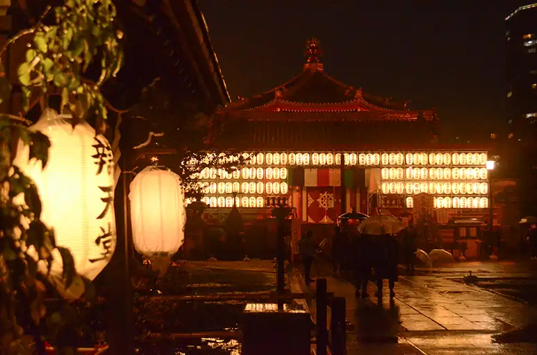 看完東照宮的點燈也可以去看看辯天堂,它是以紙燈籠為主的,所以呈現出來的氣氛會跟神社不一樣,而且下雨的晚上遊客真的遠比白天少。