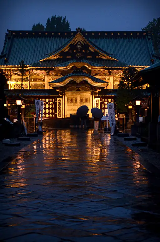 上野東照宮在這個季節除了會有很漂亮的特殊御朱印之外,晚上還會有點燈活動,下雨的話地面的積水可以反射東照宮打出的金光增添意境。