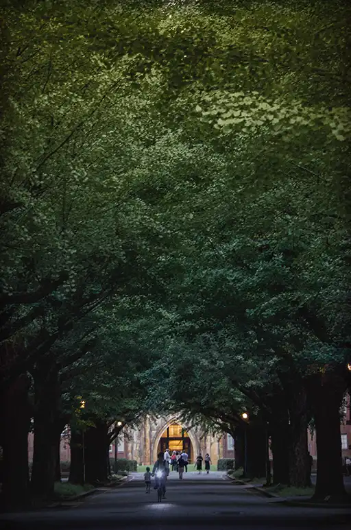 不過很可惜的是我造訪東大的時候是夏末秋初的九月,整個都是綠的,但傍晚的銀杏大道也很有氣氛,講堂的橘色燈光會特別明顯,更像是隧道口的光在呼喚你的感覺。