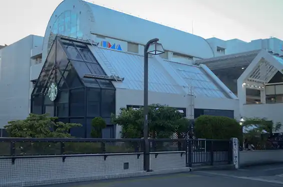 看到這間長得像溫室的星巴克就表示到尾端了,這一段路兩邊就有很熱鬧的商店了,可以看到光之丘公園這一帶整合了公園、住宅、商店、車站,底下則是車道,而且從橋上可以看到這個地鐵站甚至像火車站一樣有自己的站前公車轉運道。整個規劃都給人一種住在這裡很舒服的印象。