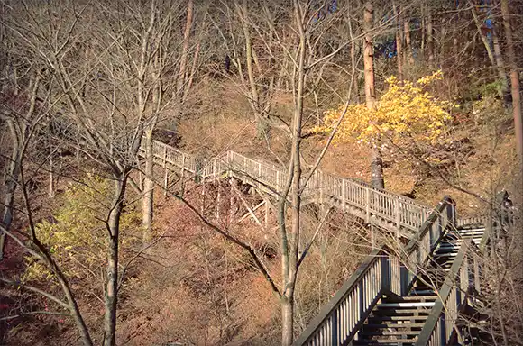 ▼ 有個可愛觀景台的「奥河口湖さくらの里公園」,雖然名為櫻之里,但秋天的楓樹也很漂亮喔!