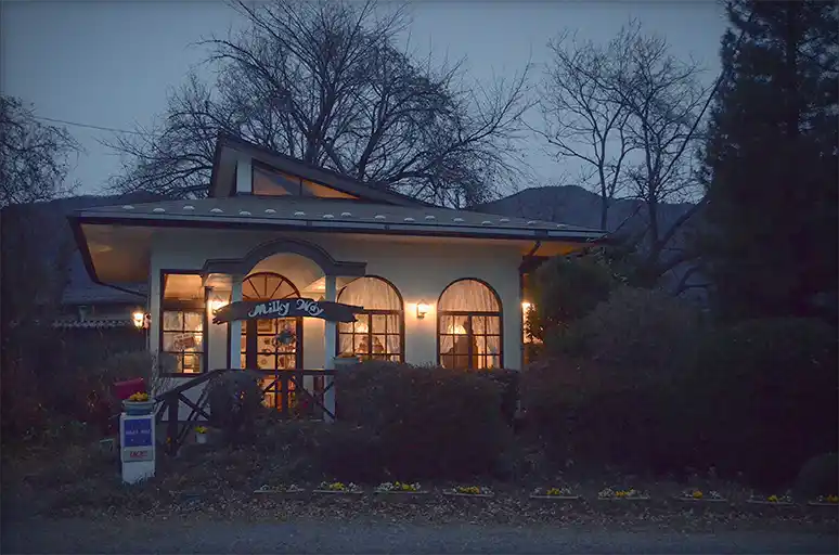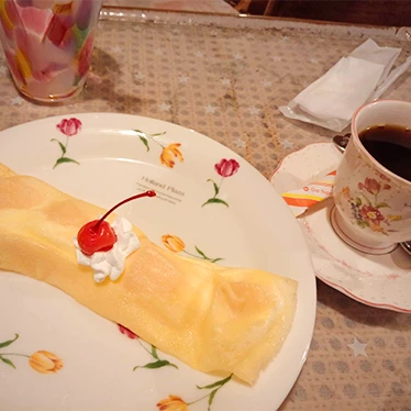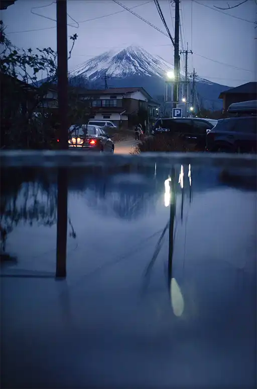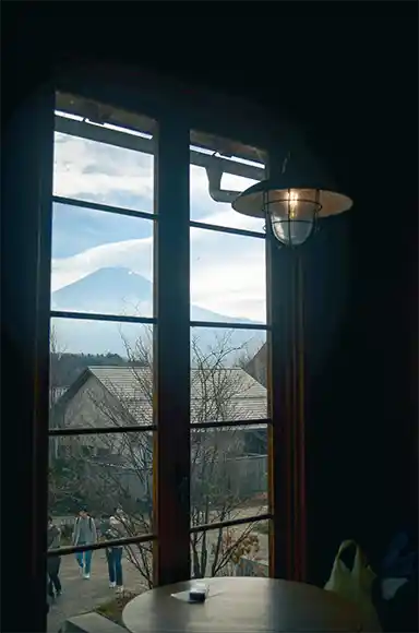 八木崎公園旁邊,很可愛很有昭和懷舊風情的咖啡廳,可麗餅等甜點相當好吃!騎了一天的車在這裡吃個甜點,一天完美的收尾後,又在路旁的水盆窺見富士山的倒影,喜獲一枚馬路旁的「逆富士」。