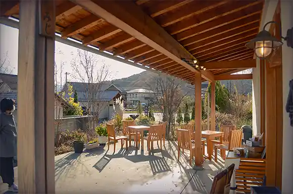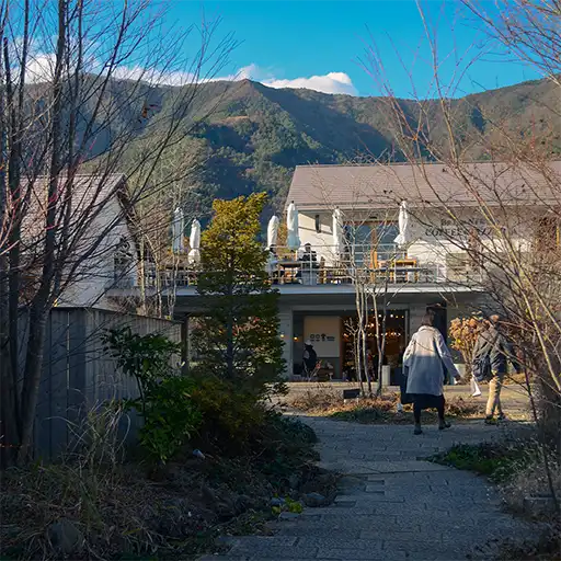旁邊的大石花園平台則是西洋風、優雅文青氣質的一個商店廣場,有很多手工藝店與簡餐咖啡廳。這裡有一間我個人蠻喜歡的咖啡飲品兼披薩店”BRAND NEW DAY”,可以邊吃吃喝喝邊欣賞湖景。賣一些好吃的果乾與餅乾的”壱の蔵”。以及一間賣和紙手工藝品與材料的”めでたや”,門口有個和紙娃娃,可以在這裡用很便宜的價格買到和紙邊角料,喜歡做手工藝的一定不能錯過它。