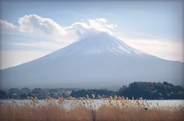 ▼ 今天富士山頭的雲像是冒著煙!