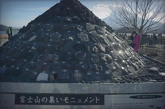 門口有一個從各地鄉土富士[*1]蒐集來的一塊石頭拼起來的富士集合。