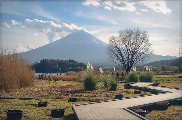繼續往河口湖的西邊,逆時針方向走,來到了大石公園,這邊公車有到,也有很大的停車場,交通很方便。作為一個花卉為主題的公園,最有人氣的是夏天的薰衣草跟秋初的波波草,11月的時節有點光禿禿的寂寞,只有湖邊的蒲葦隨風搖擺跟變得土黃的波波草。但是不用擔心,這邊除了看公園的花卉植物,園區內的自然生活館跟旁邊的商店區:花園平台(ハナテラス),都蠻好逛的。