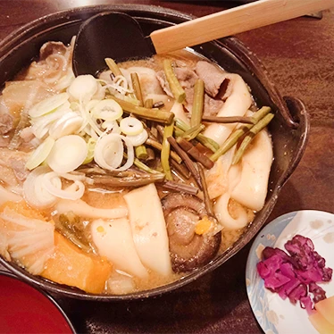 餺飥呢,就是口感有點介於烏龍麵與河粉或粄條之間的麵食,配的湯底通常有味噌,很多餐廳也會加進南瓜。